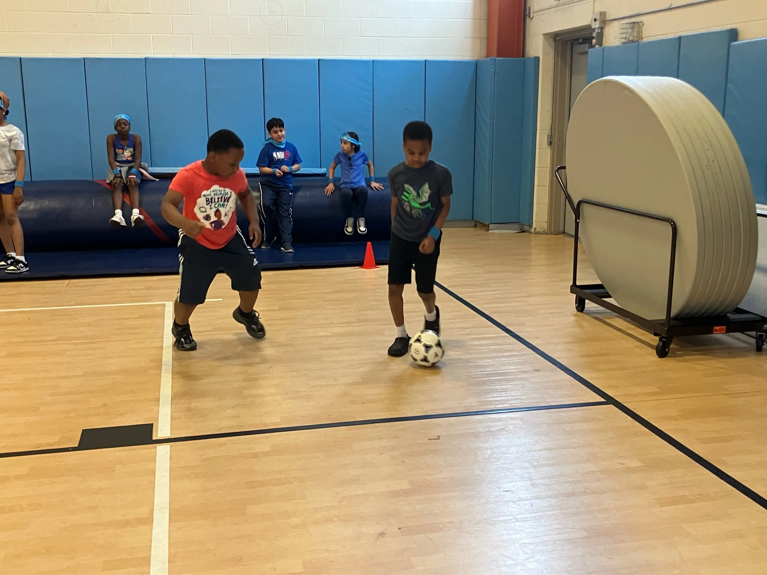 From the high energy performances, magnetic and contagious community sense of fun, and the overwhelming fusion of competitiveness and comradery, the kids couldn't help but have fun. Many students expressed that they didn’t want to leave the soccer drills taking place in the gym, but there were many other great stations to rotate through, including water games outside and special treats in the cafeteria (including popsicles supplied by YDU!) Staff and guests throughout the campus were on the ball, running activities that led to big smiles. Children would have struggled if asked to pick their favorite areas. This was a great way to end the school year and another Soccer for Success season.